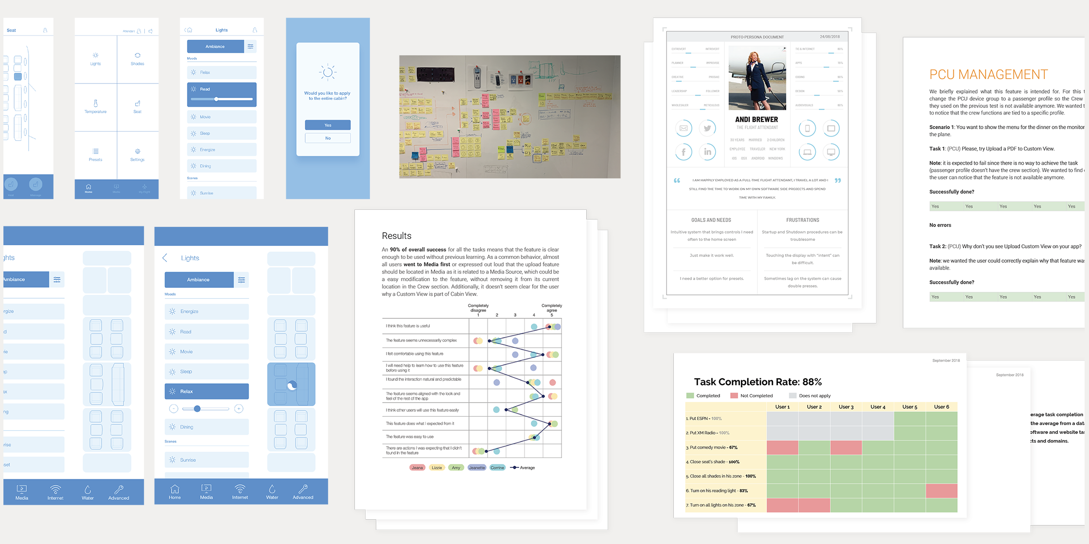 The user experience design team was responsible for all digital interface inside the cabin. These interfaces were both customer & crew facing applications designed to control various functions of the aircraft.