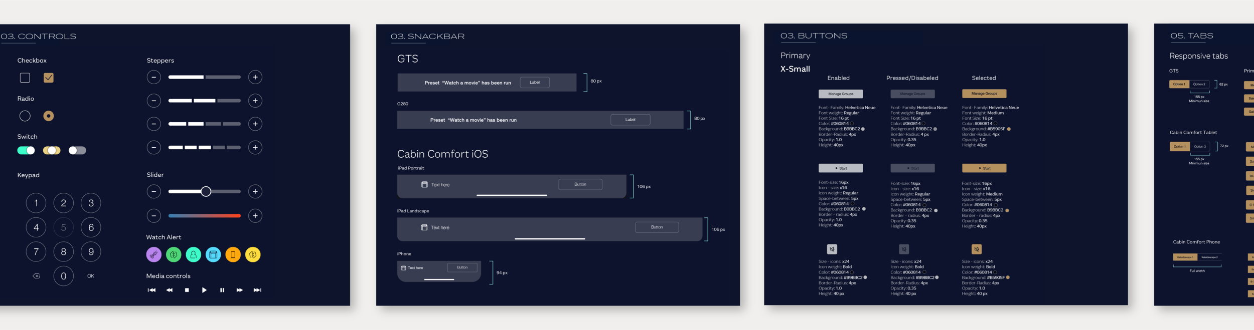 At Gulfstream, my primary focus as a Product Designer was within the Advanced Cabin R&D team, where I explored next-generation digital experiences for passengers and crew. I led the design of cabin technology solutions that seamlessly connected embedded displays, mobile devices, and wearables—enhancing everything from in-flight comfort controls to real-time flight information and interactive mapping experiences.